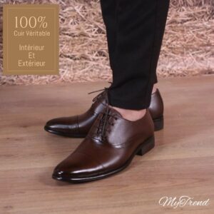 Tige: 100% cuir naturel. Doublure: 100% cuir naturel. Semelle Intérieure: EVA (légère et Confortable) + couche Supérieure en cuir naturel. Couleur: Marron foncé. Référence: DV_2025M. Origine : Tunisie.